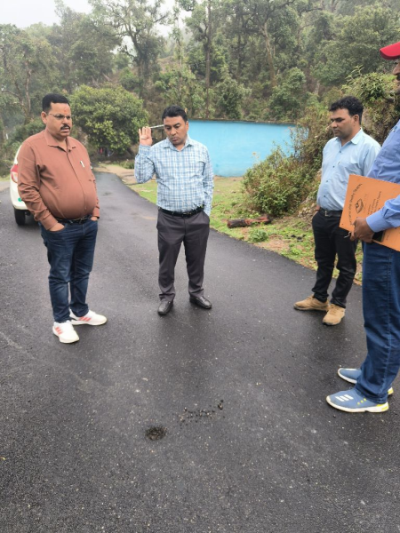 Checking of B C work under CRIF on Champawat munch Tamli Road SH64 by Chief engineer Almora Sir