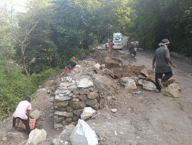 R/w work at km 10 of Nandprayag Nandanagar motor road