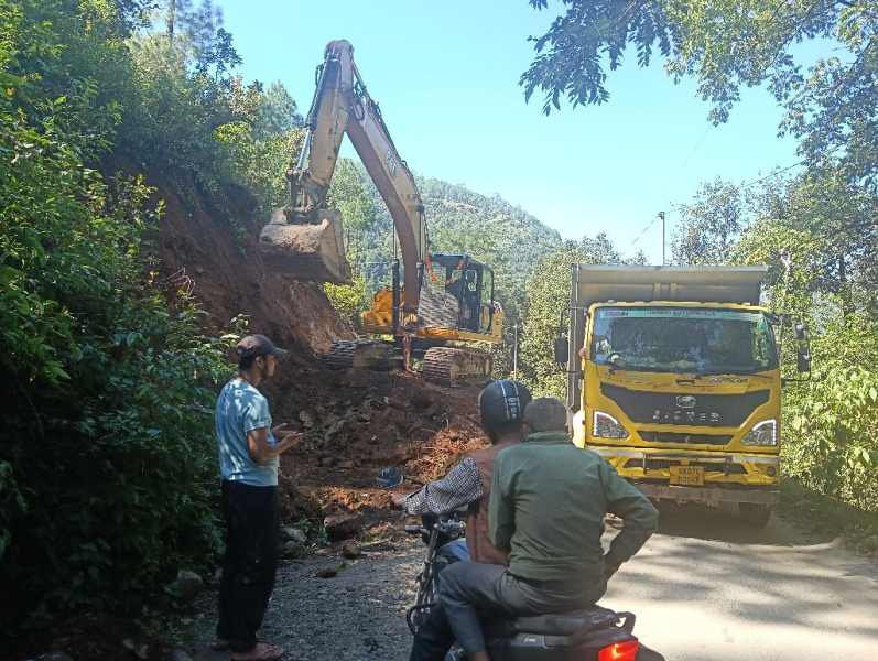 CRIF Nandprayag Nandanagar hill side cutting work at km 11