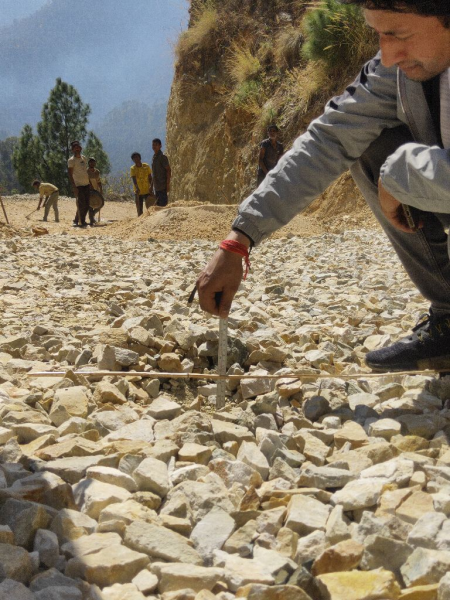 Chamiyala inderwan gaon kangra motor road G3 WBM thickness measurement