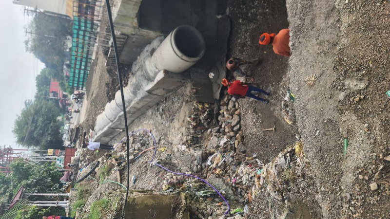 भारी बरसात के बाद रेस्टोरेशन के कार्य निर्माण अधिनियम पुलिया के दोनों और