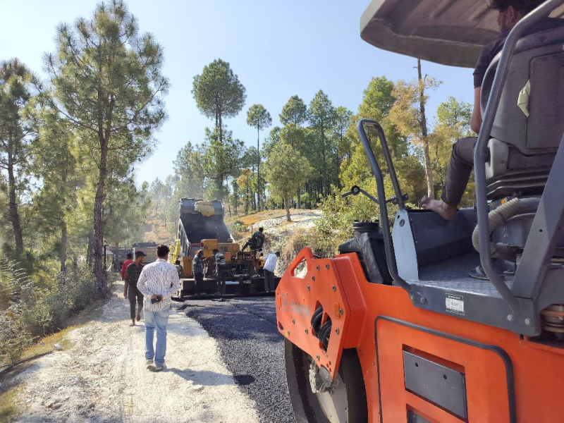 Bituminous concrete work is in progress at ch 5+975 in kanda saniudiyar rawatsera MR