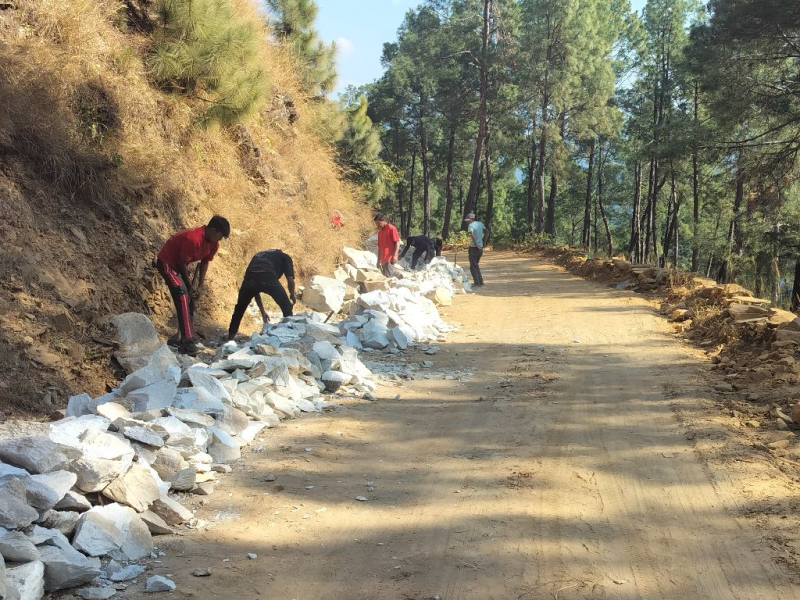 stone breaking work for inter coat g2 is in progress in runikhet Gandhigram amtoda VR at km 6 hm 8-10