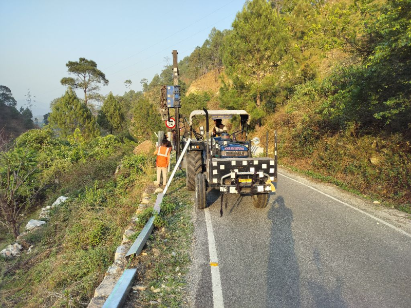 Installation and Assembly of crash barrier at ch 7+150 in bageshwar girechina mr under road safety