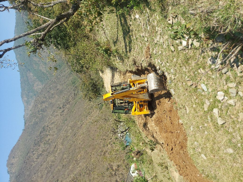 Work in progress,, of Dhari Lee Pokhari MR hill side cutting, under State sector,, in District Pauri Garhwal