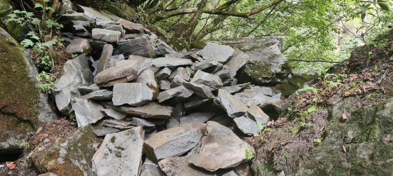 Material collection work is going on for stoneset pavement at chainage 10/23
